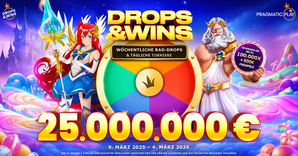 1. WÖCHENTLICHE WHEEL DROPS bieten einen erwarteten wöchentlichen Preispool von dreihundertfünfzigtausend Euro (350.000 €) mit siebenundvierzigtausend (47.000) Preisen in Form von Multiplikatoren für den Gewinneinsatz des Spielers, einem Freispielbonus und einem Sofortbonus.